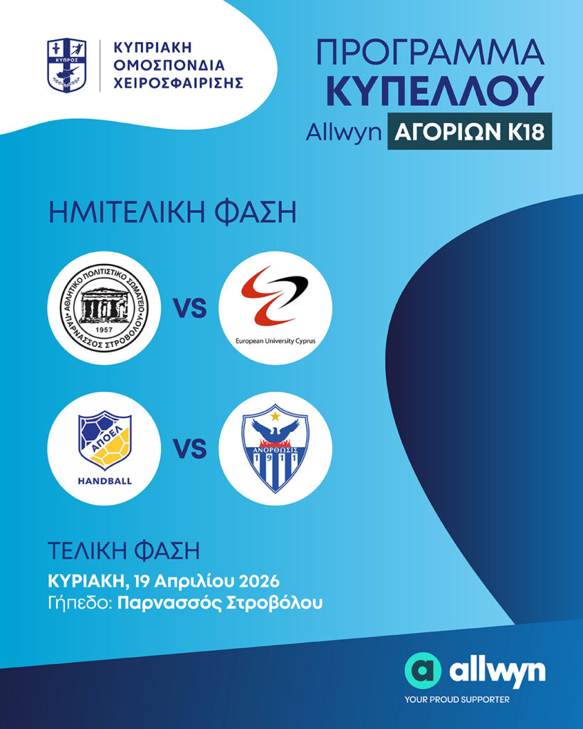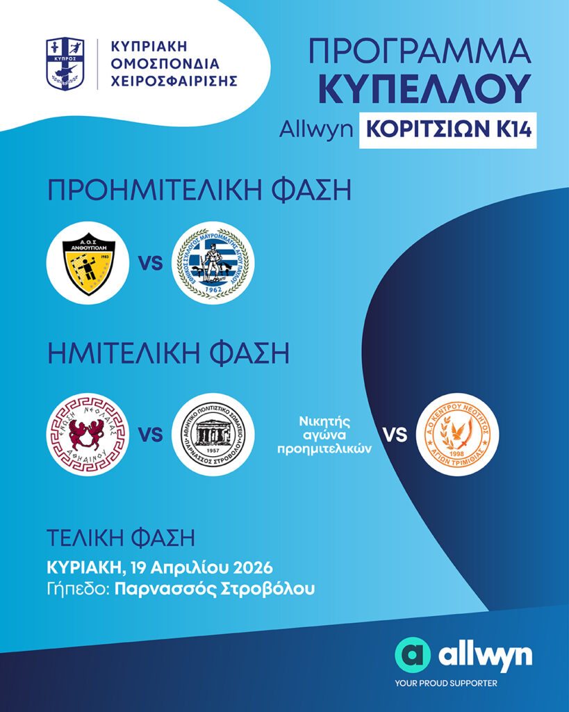 Με προορισμό τους τελικούς που θα διεξαχθούν την Κυριακή, 19 Απριλίου 2026, στο γήπεδο του Παρνασσού στον Στρόβολο, από την Τετάρτη του Πάσχα ξεκινάνε τα παιχνίδια της προημιτελικής φάσης στα Κύπελλα Allwyn των αναπτυξιακών ηλικιών, Αγοριών Κ18, Κ16 και Κ14 και Γυναικών Κ16 και Κ14.